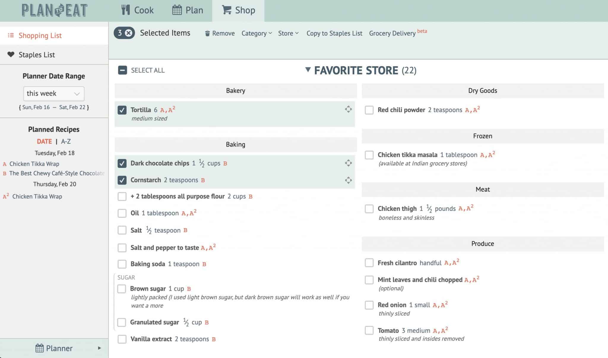 The Shopping List also received a few updates to streamline the way selecting items appears across Plan to Eat. You’ll notice that a more minimalistic action menu appears at the top of the Shopping List when you select items, very similar to when you select recipes.