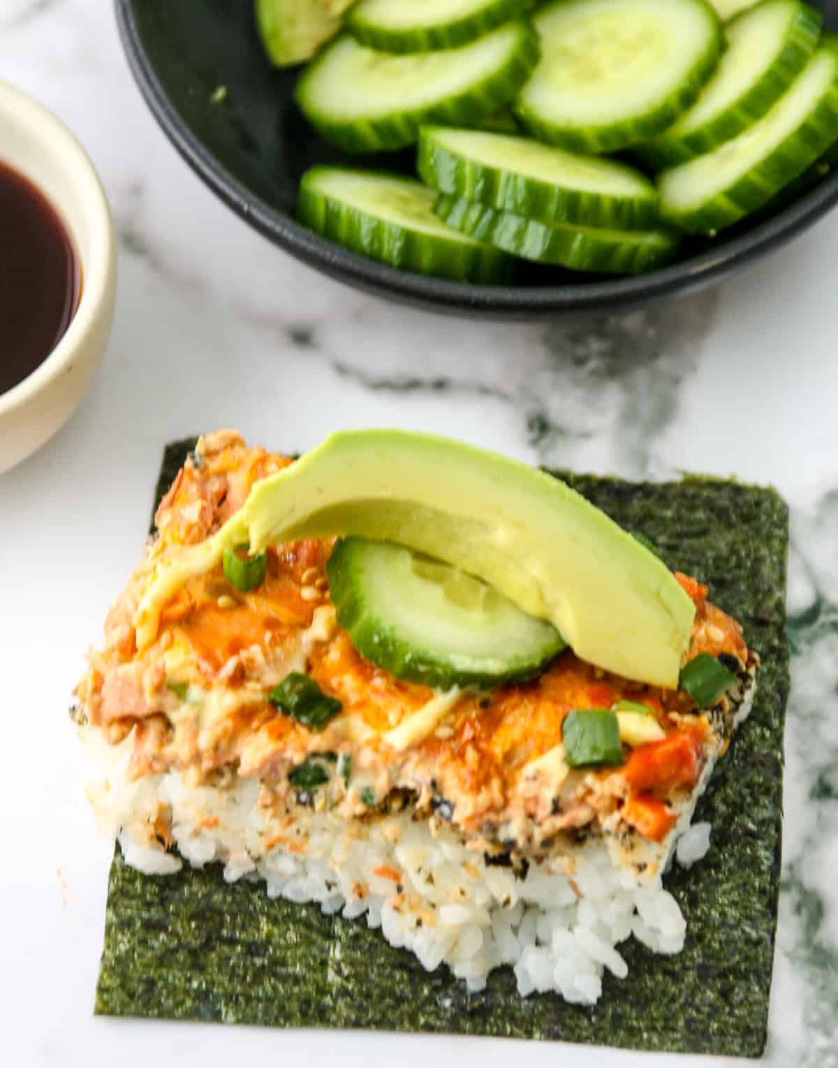 - Convenient: This easy spicy salmon sushi bake has all the flavors of a spicy salmon roll. So you can satisfy your sushi cravings without going out.